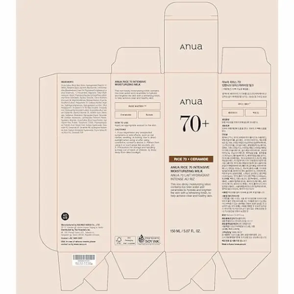 شیر مرطوب کننده و روشن کننده برنج 70 و سراماید آنوا Anua