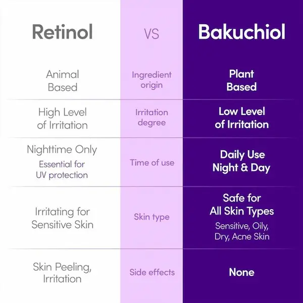بدیل ملایم رتینول: چون باکوچیول گیاهی است و تحریک کمتری نسبت به رتینول کلاسیک دارد، برای کسانی که نمیتوانند رتینول را تحمل کنند، مناسب است.